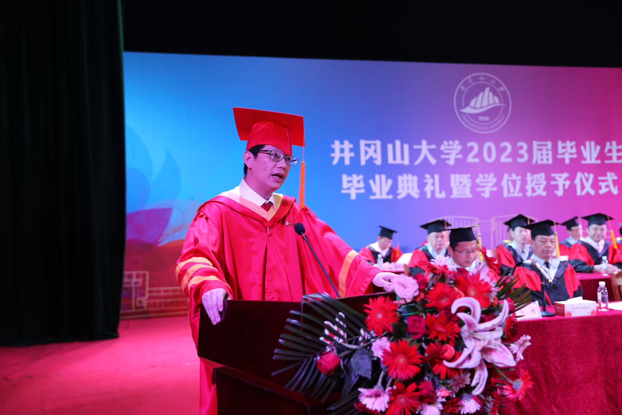 罗旭彪指出,2023届毕业生见证了我校“十四五”发展的宏伟蓝图、夺取申硕攻坚战的决定性胜利、隆重召开学校第三次党代会、国家级教学成果奖从“零”到“二等奖”的突破以及学校高质量跨越式发展等重要开篇。同学们毕业后永远是吉安革命老区的贵客,是井大的孩子,井大永远是坚强后盾与温暖港湾。希望毕业生未来作为井大校友携手共创井大的灿烂辉煌。