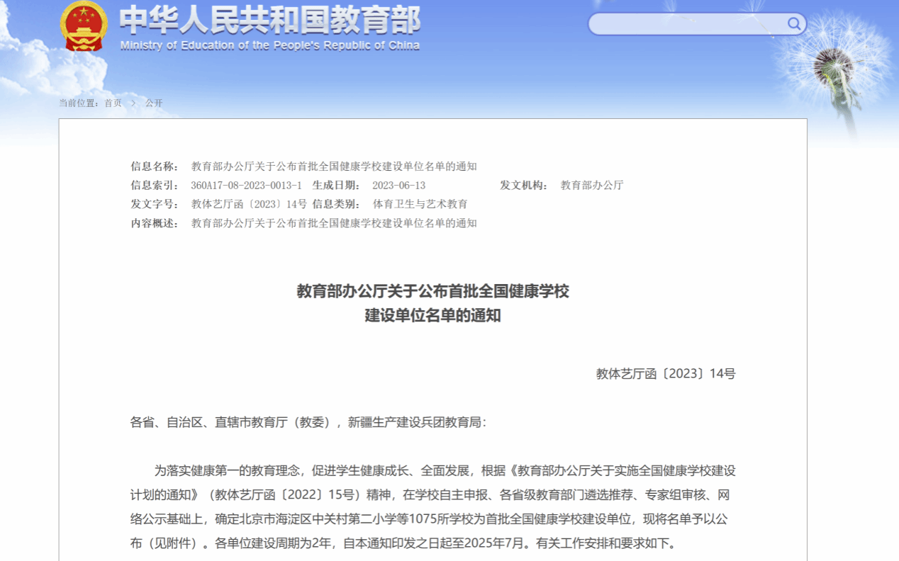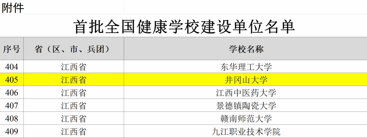 近日,教育部印发《关于公布首批全国健康学校建设单位名单的通知》(教体艺厅函〔2023〕14号),确定1075所学校为首批全国健康学校建设单位,井冈山大学成功入选。