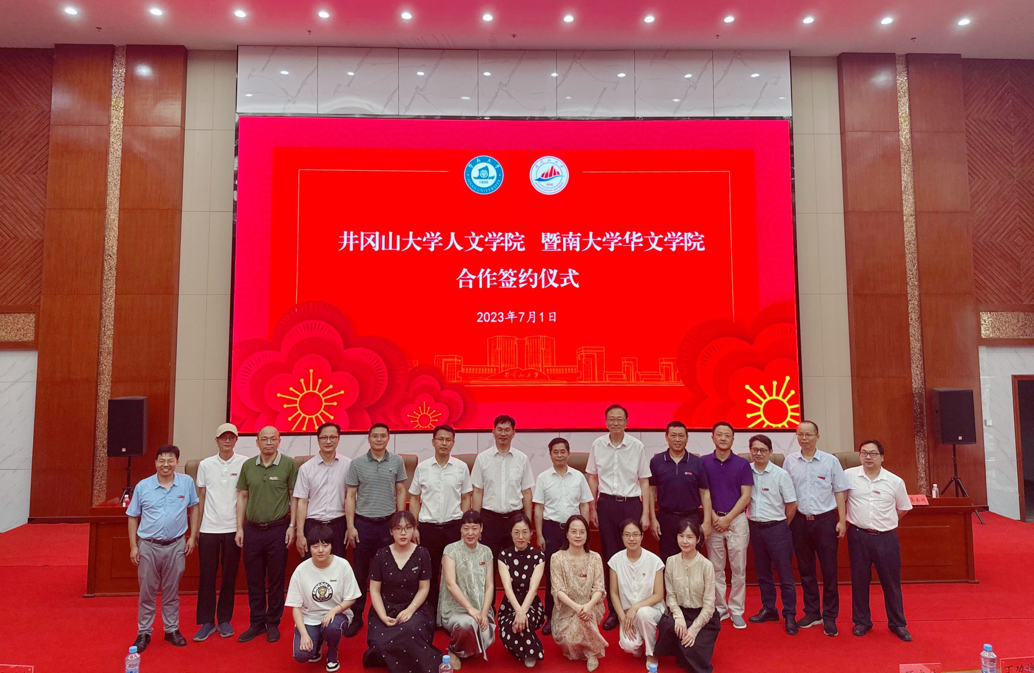 7月1日,人文学院与暨南大学华文学院在我校举行合作签约仪式。暨南大学党委常委、副校长翁健,我校党委常委、副校长肖宜安,党委常委、副校长冷明出席。人文学院院长龚奎林、暨南大学华文学院院长邵宜分别代表双方签订合作协议。人文学院和暨南大学华文学院相关领导及师生参加本次签约仪式。