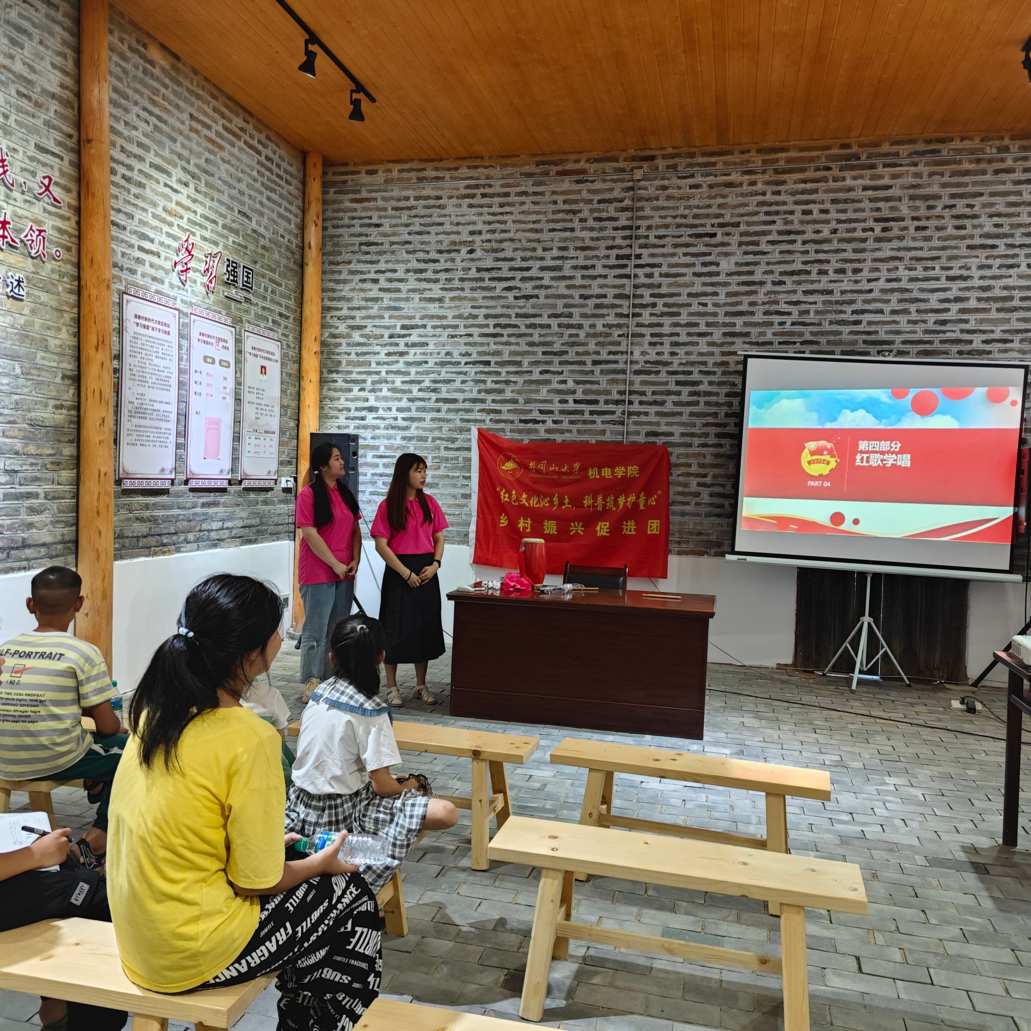 机电工程学院志愿服务队成员们来到青原区文陂镇文陂村为村里的孩子们开展“学习二十大精神,同心奋进新征程”活动。活动共分为“党的二十大精神我来讲”“红色歌曲我来唱”“我是传花小能手”三个环节。在“党的二十大精神我来讲”的环节中,实践团成员为孩子们带来一场“踔厉奋发,笃行不怠”的主题宣讲,并借助动画视频来引导孩孩子们了解和感悟党的二十大精神。在“红色歌曲我来唱”环节中,实践团成员们带领孩子们唱红歌,用稚嫩而清脆的歌声来演绎《我和我的祖国》,表达出对党和人民的美好祝愿。在“我是抢花小能手”环节中,实践团成员带领孩子们玩“击鼓传花”和“数字爆炸”的小游戏,要求被传到花的小朋友背诵一首经典诗篇或者演唱一首红歌。“北国风光,千里冰封,万里雪飘。望长城内外,惟余莽莽。”整个教室充满了欢声笑语。