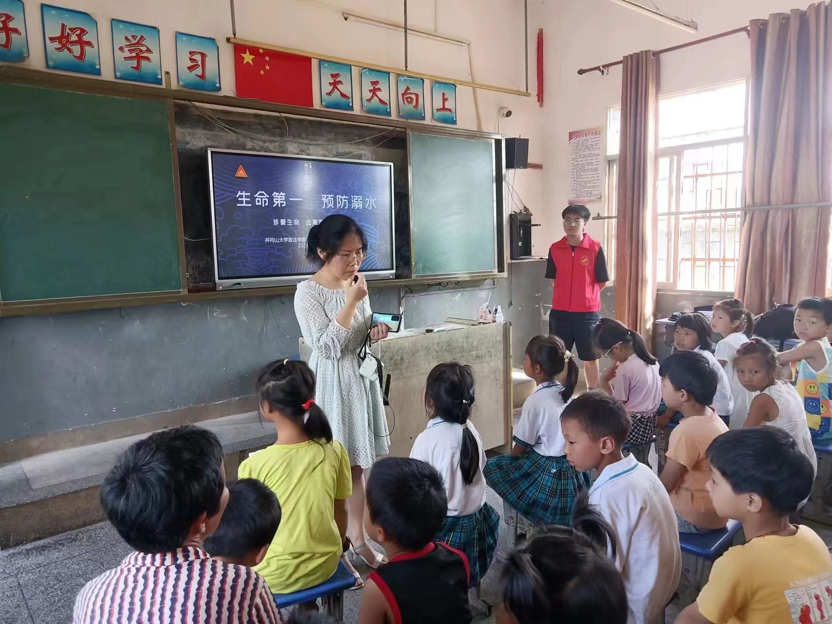 政法学院暑期文明实践团前往吉水县尚贤乡桥头村开展“生命第一,预防溺水”安全教育,文明实践团结合多彩多样的活动形式,以课堂为依托,借助互动、问答、演示等方式就“预防溺水的重要意义、预防溺水的举措、溺水的自救办法、发现溺水的应对措施”四个方面为家长和儿童进行讲解,并通过走访入户的形式向各户村民讲解防溺水倡议书,为杜绝溺水事故的发生起到了良好的防范作用,切实增强村民安全防范意识,预防溺水事故的发生,有效增强了村民们防溺水意识和责任感,为建设“和谐、美丽、安全”的社会主义新乡村贡献青春力量。
