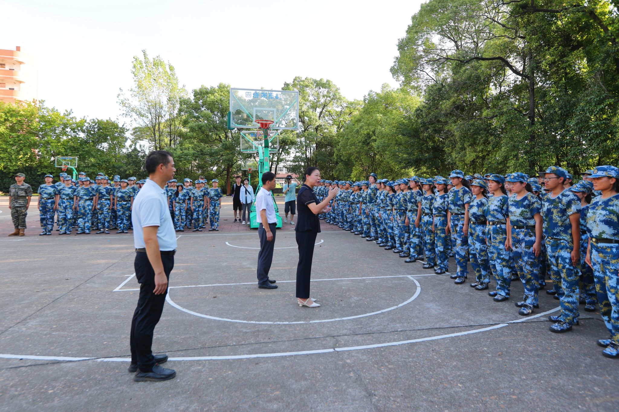 9月19日下午,我校党委书记胡春晓,党委常委、副校长刘利民,在学校武装部负责人的陪同下,前往我校2023级新生军训现场了解新生军训情况,亲切慰问军训教官及全体参训的2023级新生。