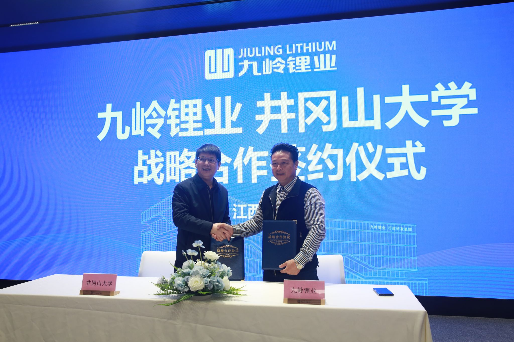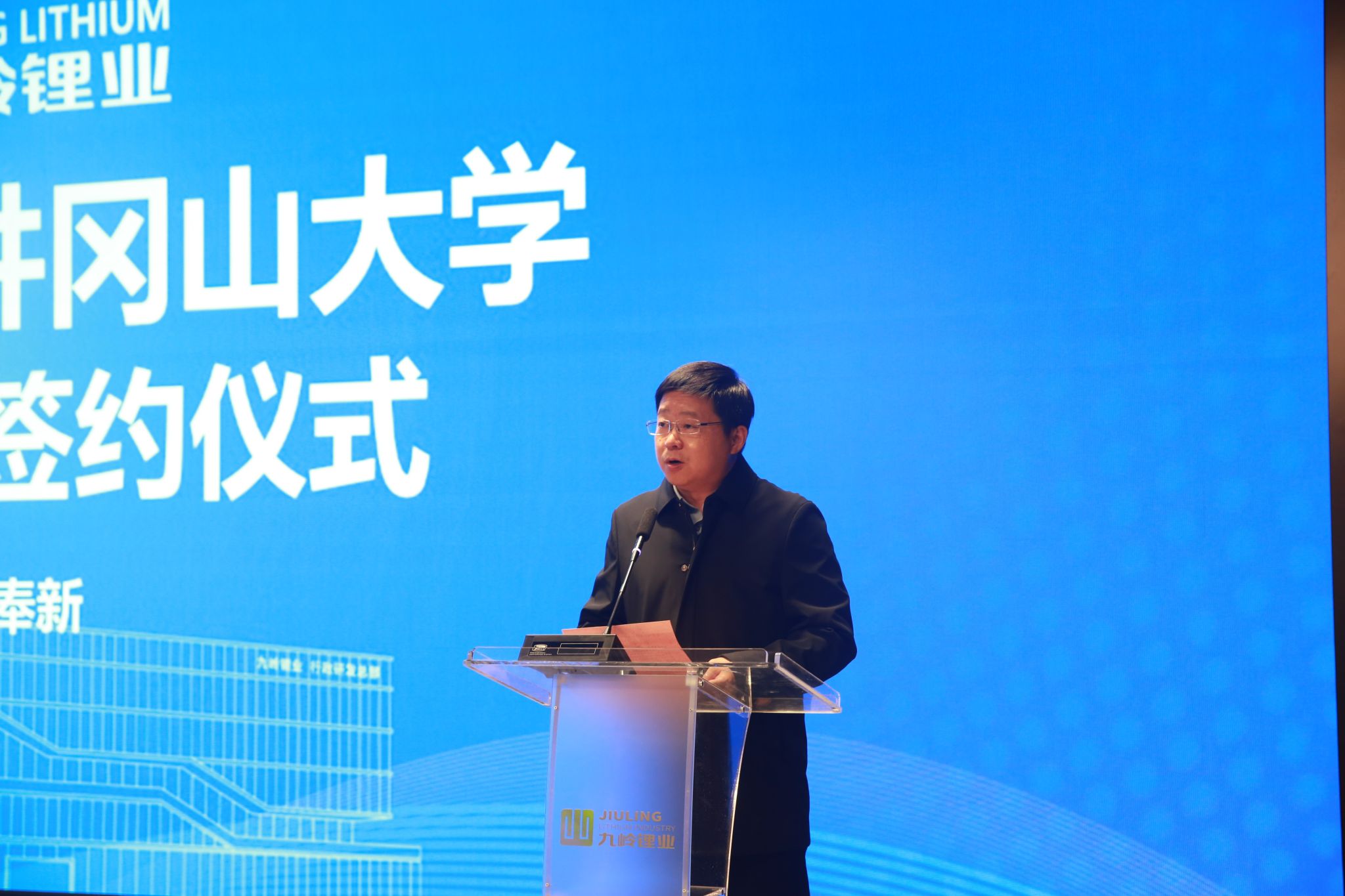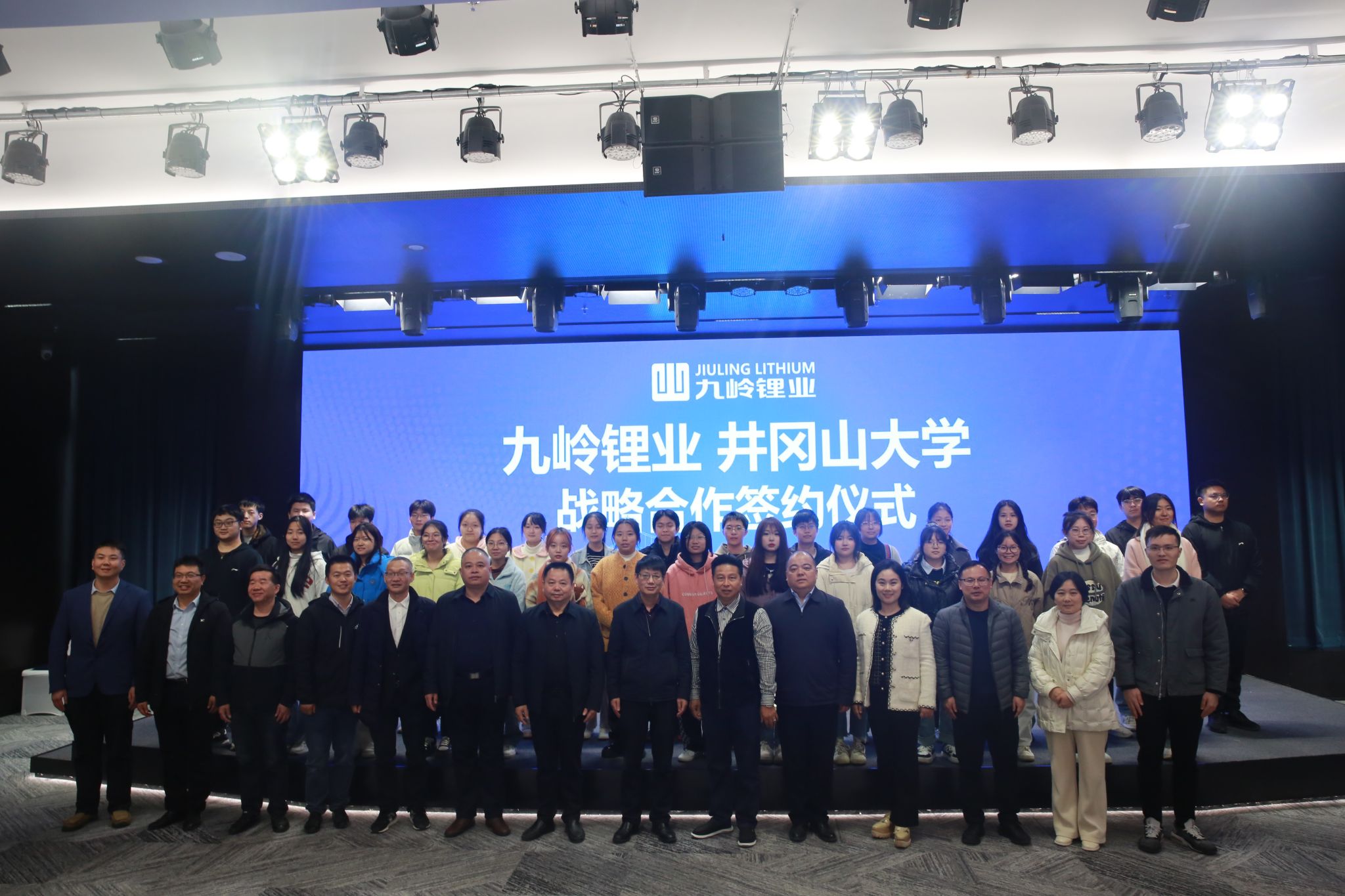 11月30日上午,井冈山大学与九岭锂业校企战略合作签约暨新材料现代产业学院九岭锂业微专业班开班仪式在江西九岭锂业股份有限公司行政研发总部举行。井冈山大学党委副书记、校长罗旭彪,奉新县县长喻军、副县长陈永昌,江西九岭锂业股份有限公司负责人潘蕊出席,我校化学化工学院部分老师和微专业班29名同学参加了仪式。