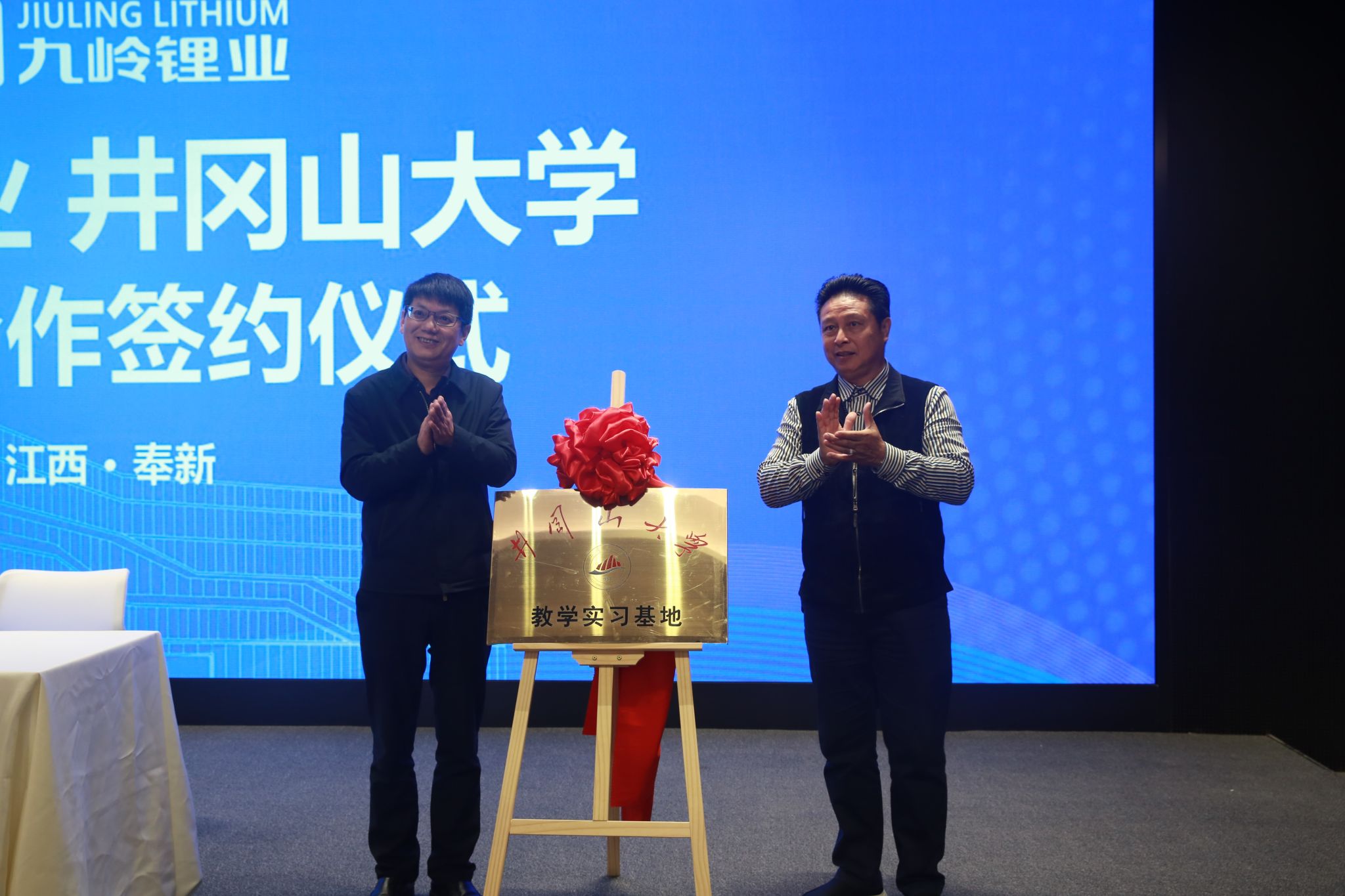 罗旭彪和魏绪春签订了“实习就业基地合作协议书”,并共同为井冈山大学教学实习基地揭牌;化学化工学院党委书记康云峰和九岭锂业人力资源部部长邓亮亮签订了“九岭锂业微专业班合作协议书”。