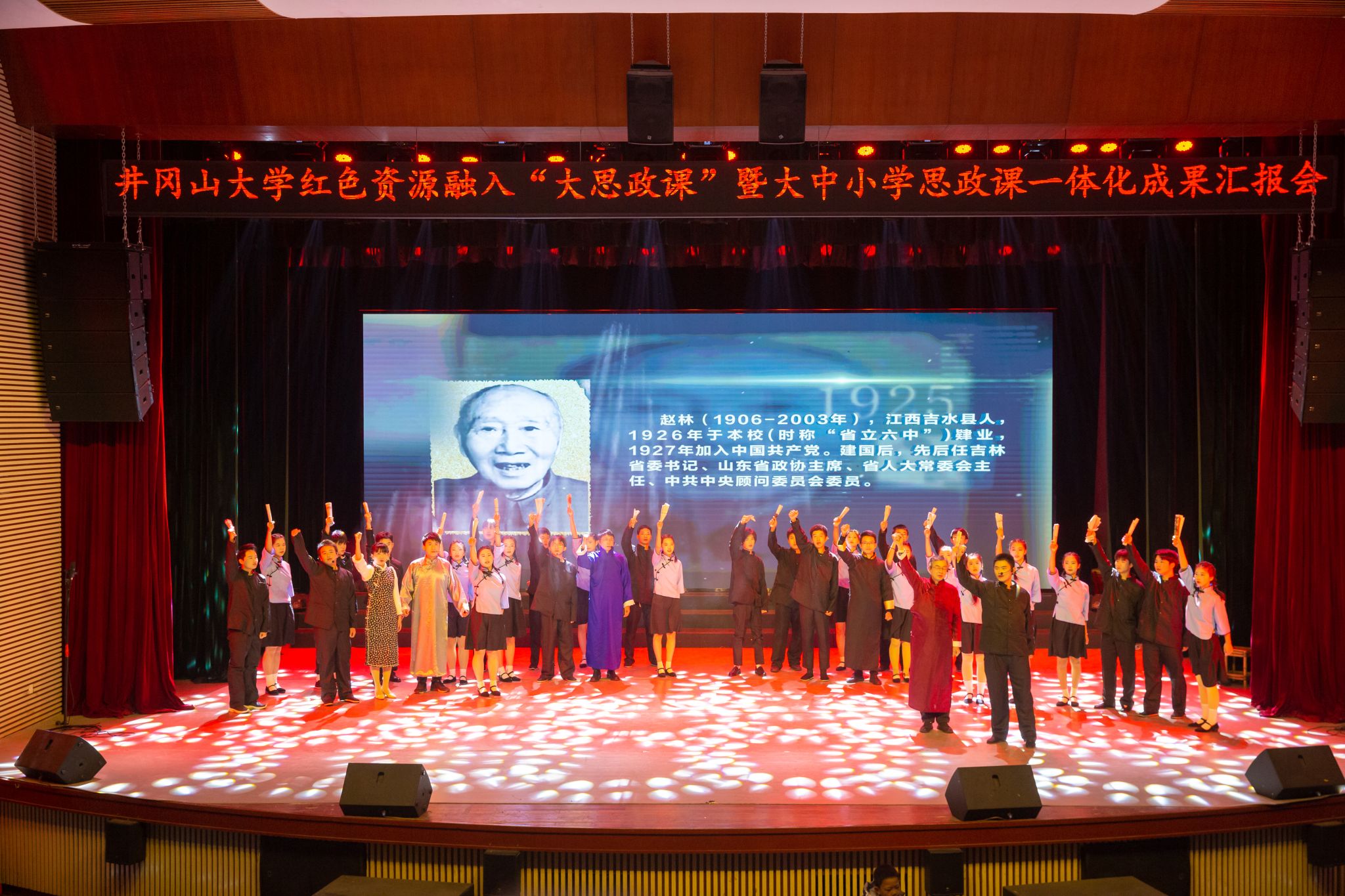 为深入学习贯彻党的二十大精神,进一步推动红色资源融入人才培养的全过程,12月23日,井冈山大学马克思主义学院主办的2023年红色资源融入“大思政课”暨大中小学思政课一体化实践教学汇报会在音乐厅举行。校党委副书记肖宜安,党委常委、宣传部长肖洪海出席并观看汇报会。马克思主义学院全体教师以及井冈山大学、白鹭洲中学、井冈山大学附属中学、石阳小学、北门小学共计300多名师生参加。