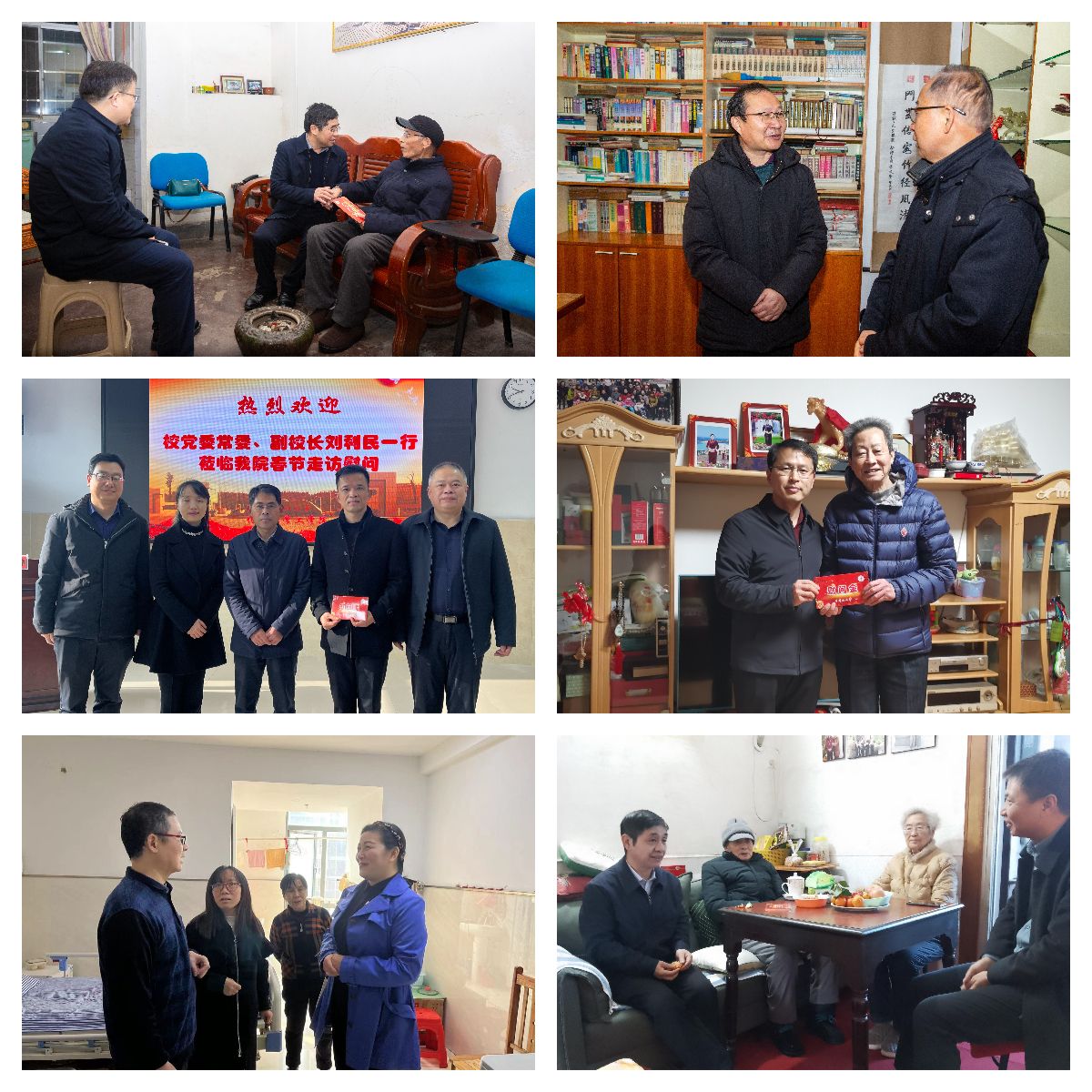 为迎接新春佳节、表达对教职工和离退休同志的关心关爱,1月8日至16日,校领导胡春晓、罗旭彪、肖宜安、黄俭根、李军、刘利民、冷明、廖岚、彭西洪在有关部门和单位负责人的陪同下,分别走访慰问了学校的厅级退休干部、老党员、抗美援朝军人、重病和生活困难职工、优秀教职工代表、困难党员、党外人士代表,为他们发放了慰问金,并为他们送去学校的关怀和温暖,送上诚挚的新春祝福。