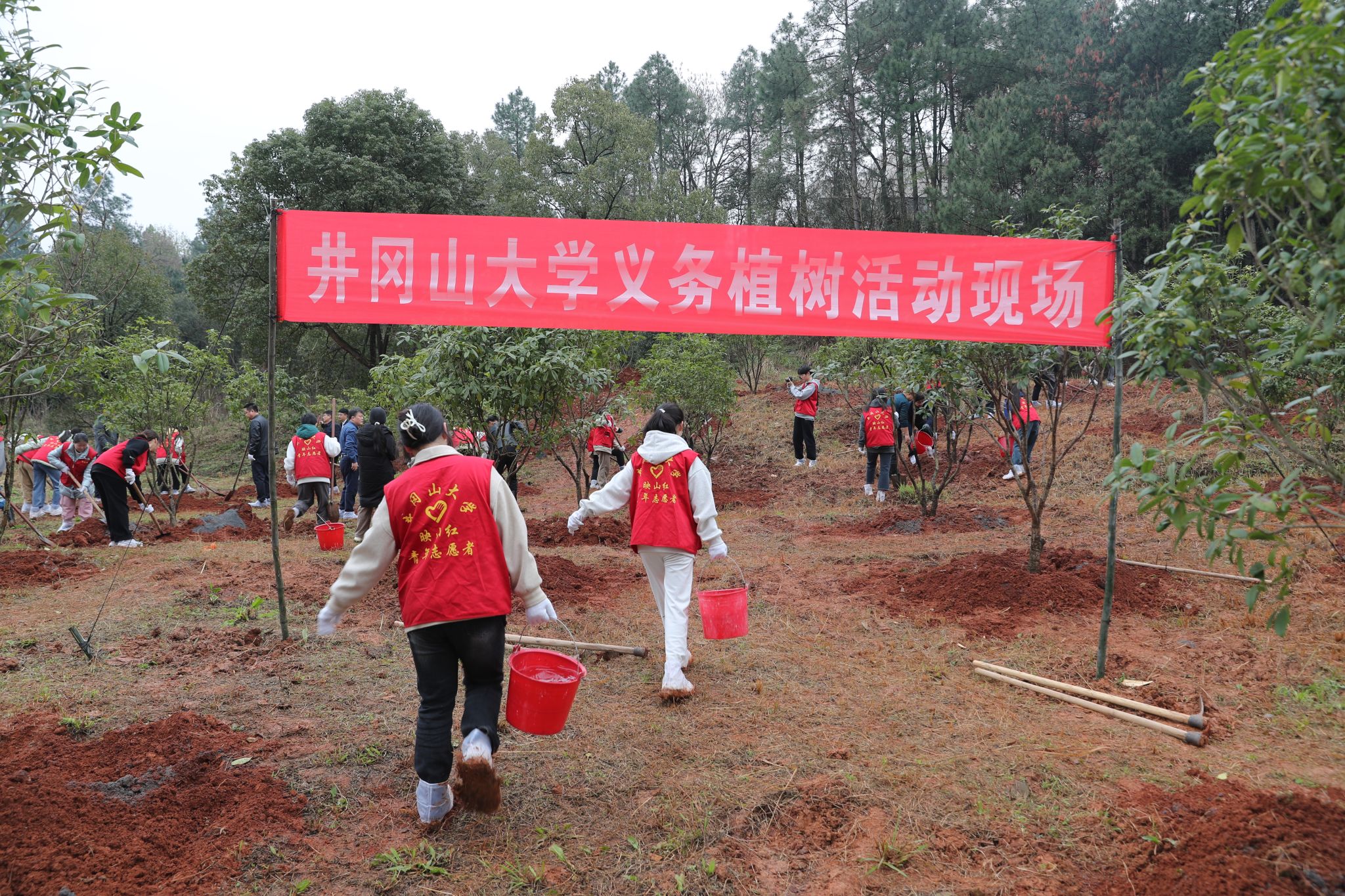 东风渐暖山水醒,播种植树溢春光。为深入贯彻落实习近平总书记提出的绿水青山就是金山银山的理念,响应全面推进美丽中国建设的号召,3月14日,井冈山大学开展了义务植树活动。校党委书记胡春晓,党委副书记、校长罗旭彪及全体在家的校领导,各职能处室负责人、学生代表参加了植树活动。