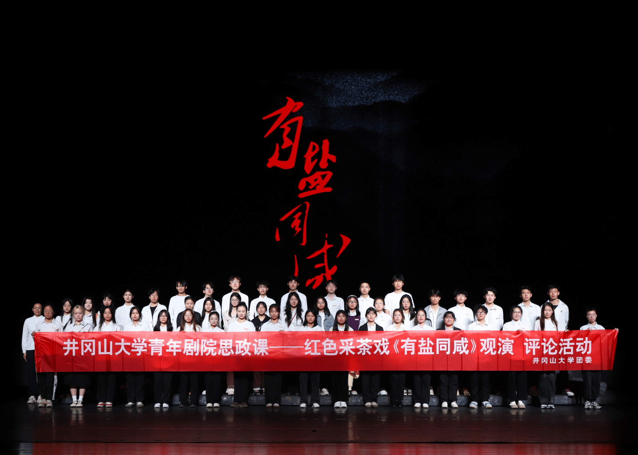 《有盐同咸》用小故事串起大道理、用小切口印证大时代,艺术化地再现军民坚守宗旨、坚定信仰、坚决担当的光辉历史。精美的舞台设计、婉转的唱腔、动人的剧情,跟随舞台上的演员一起穿越时空,广大师生用心感受井冈山革命斗争时期军民鱼水情深,体味‘化盐入水鲜到心’的温暖与坚定。