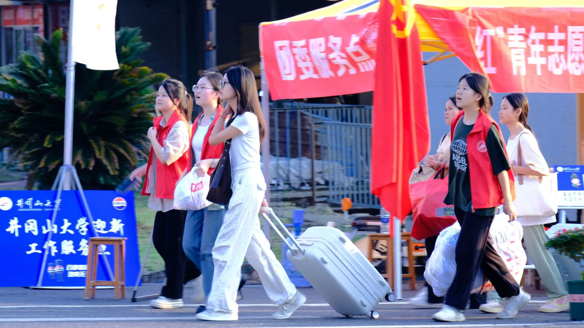 “天气是很炎热,但想到要上大学了内心充满期待,就早早来报到了。”9月4日,2024级人文学院广播电视编导专业的新同学蔡雨彤充满期待地走进井大校门,和她一样,今年有近两千名2024级新生提前来校报到。9月5日和6日,是井冈山大学新生正式报到的日子,来自全国各地的7379名2024级本科生带着对未来的憧憬和希望前来报到,顺利完成入学。一千多名志愿者心怀喜悦,以热情的姿态和周到的服务迎接新同学。