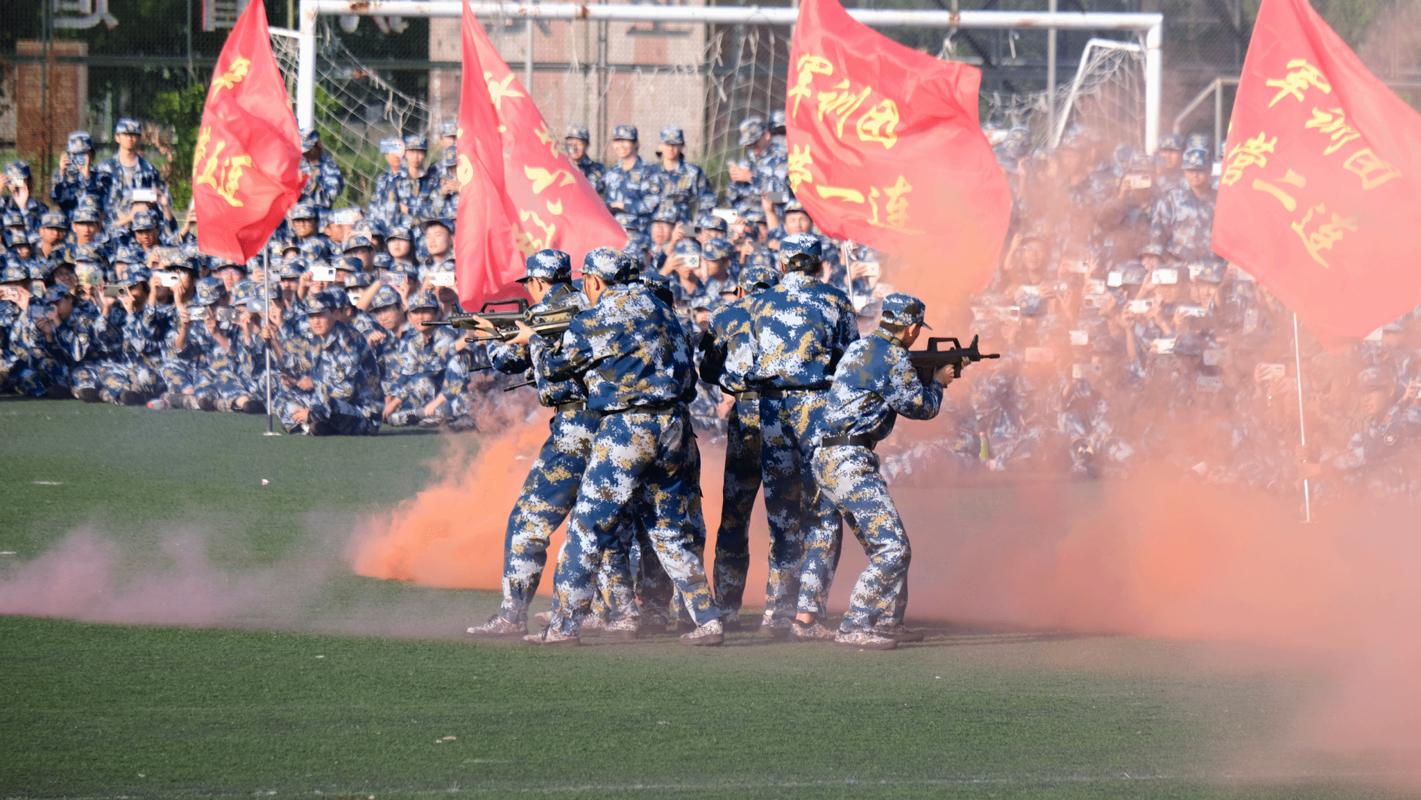 新生方队代表在大会上进行了精彩的军训成果展示。列队会操整齐划一、宛若一体,以高度的默契配合诠释了众志成城的协作魅力。军训教官表演擒敌演示,每一个动作都精准有力,尽显军人的刚毅与果敢。他们的身姿矫健,仿佛猎豹在草原上疾驰,每一次出击都充满了爆发力与震慑力。
