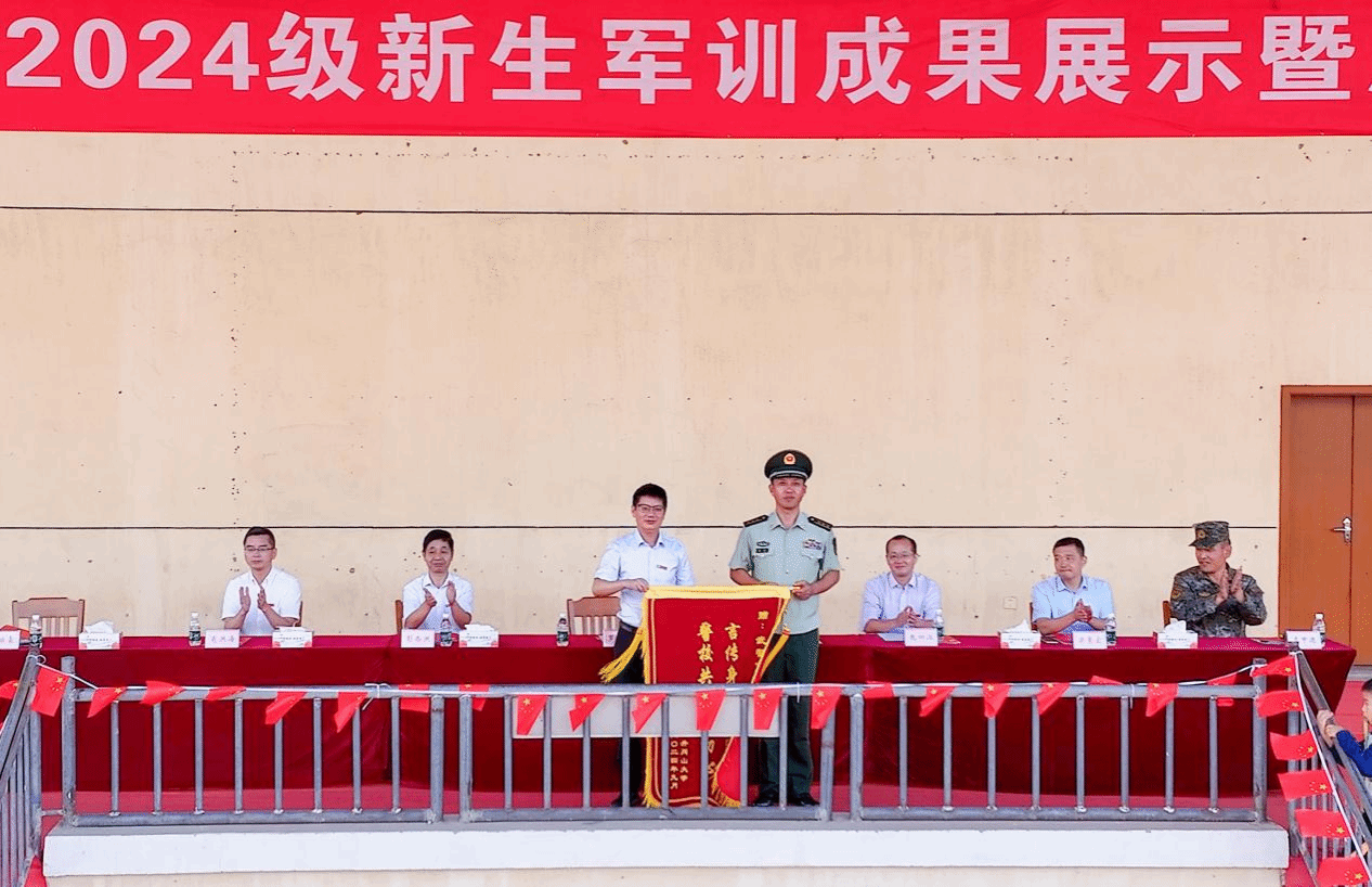 9月22日,2024级新生军训成果展示暨总结大会举行,为期半个月的新生军训工作圆满结束。校党委副书记、校长罗旭彪为武警吉安支队颁发锦旗,学校党政班子成员彭西洪、肖洪海、梁景宏出席。党委常委、副校长敖四江讲话,党委常委、副校长黄族豪主持。武警吉安支队支队长陈强出席大会,武警吉安支队副参谋长、军训团副团长李甲德宣读获得先进的军训连队、集体和个人。校军训领导小组成员、军训教官、各学院新生班班主任、辅导员以及全体2024级新生等6200余人参加大会。