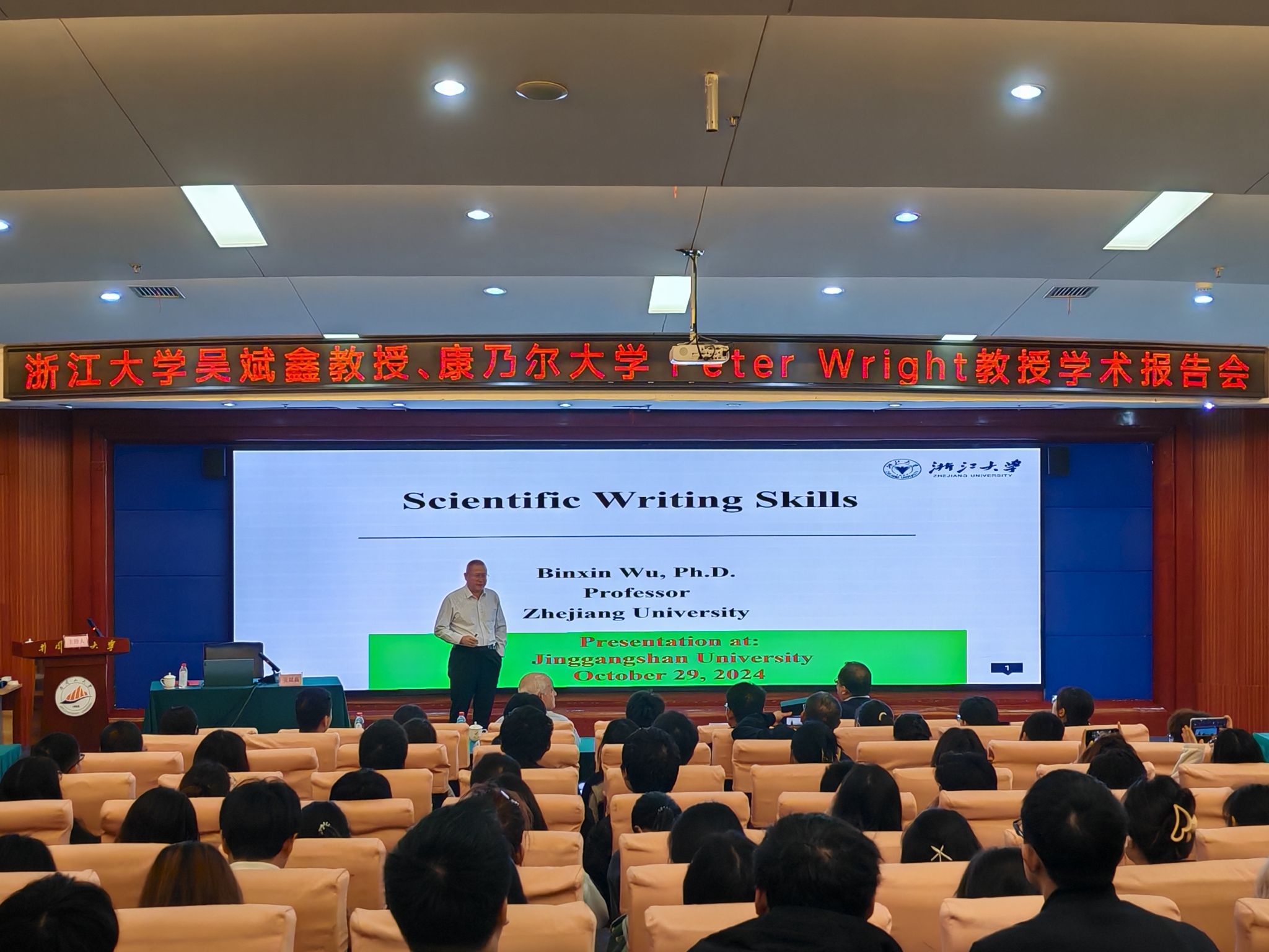 2024年10月29日下午,国家级“海外高层次引才计划”专家、浙江大学吴斌鑫教授和美国农业部杰出技术专家、美国康奈尔大学Peter Wright教授来访学校,并向我校师生分别开展主题为《SCI论文写作技巧》和《Bioenergy in the U.S.(美国的生物能源)》的学术报告。报告由校长助理张赫主持,校党委常委、副校长黄俭根、科研处负责人出席,在校相关专业教师和硕士研究生聆听了报告。