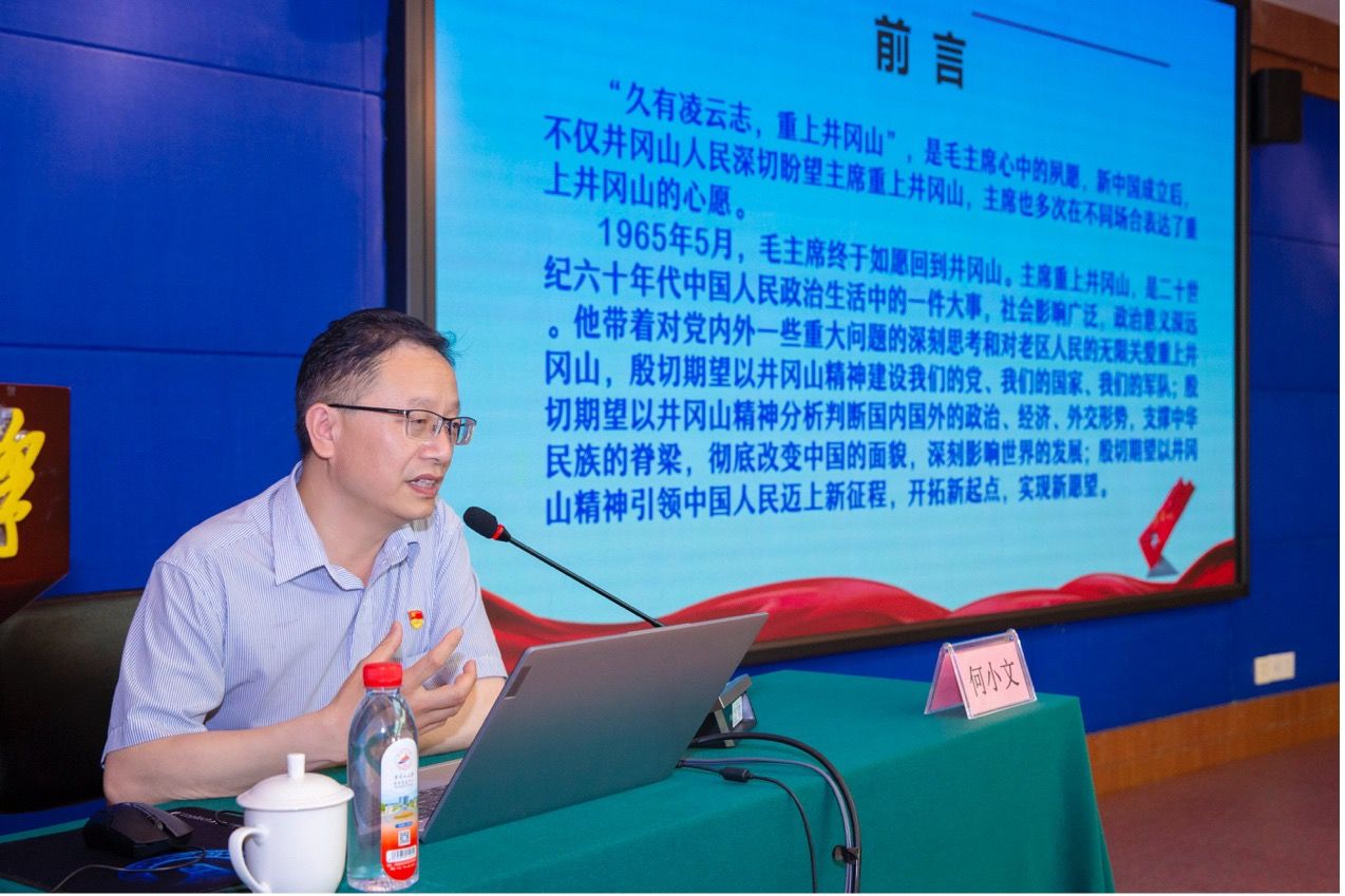 随后,井冈山革命博物馆研究员何小文同志以《世上无难事 只要肯登攀——毛泽东重上井冈山的重要谈话及其新启示》为题,上了一堂生动而深刻的微党课。何小文同志从毛主席重上井冈山的历史背景出发,详细解读了毛主席的重要谈话内容,并结合当前形势和中央八项规定精神,阐述了谈话对于新时代党员干部的启示和意义。他强调,作为新时代的共产党员,我们要继承和发扬井冈山精神,不畏艰难险阻,勇于攀登高峰,为实现中华民族伟大复兴的中国梦而努力奋斗。