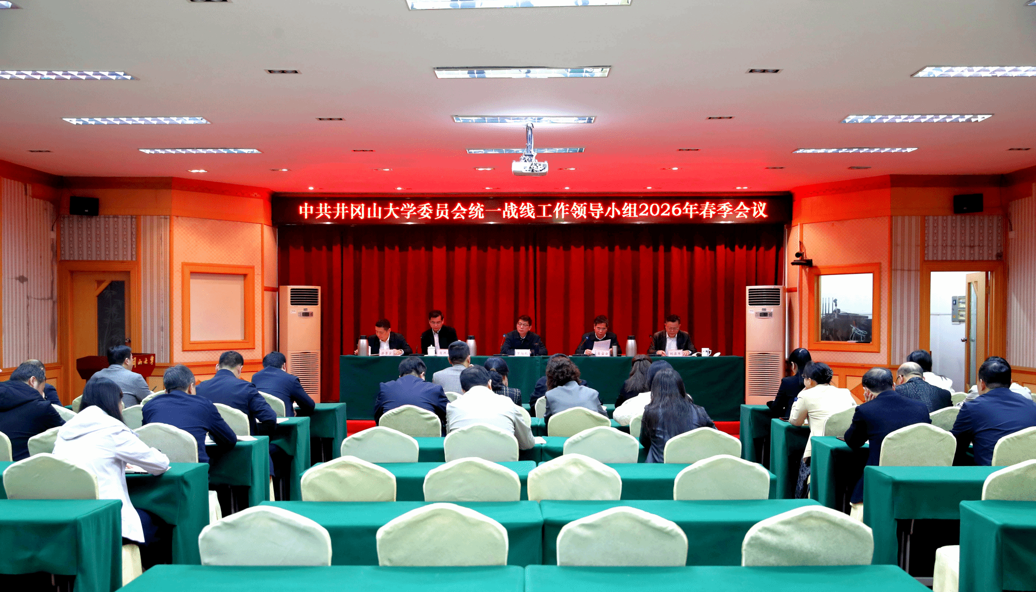 3月30日,学校召开统一战线工作领导小组2026年春季会议。校党委书记罗旭彪出席会议并讲话,校党委副书记肖宜安主持会议并传达学习全国、全省统战部长会议精神,校党委常委、统战部部长刘梁军作统一战线工作报告,学校统战工作领导小组成员参加会议。