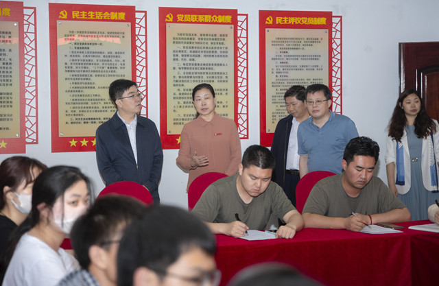 林成涛来到南区学生宿舍19栋考察了学生一站式服务中心,资产经营公司、招就处、学工处、保卫处、后勤保障处等相关职能部门的工作人员正在该中心紧张忙碌地为大学生办理各类业务,接受相关咨询。林成涛随后走进了19栋学生社区党员活动室,政法学院的学生第一党支部20余名学生党员正在这里举行主题教育集中学习研讨,大家在热烈的交流学习心得,分享学习体会。林成涛又来到了“黄志兴育人工作室”,该工作室是江西省首批辅导员名师育人工作室,负责人黄志兴从六个方面介绍了工作室做好大学生思政工作的经验做法和取得的成效,林成涛对此给予了肯定,并指出了下一步的努力方向。