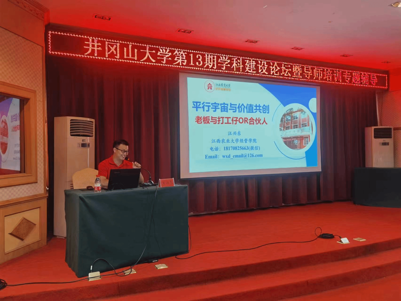 汪兴东教授作了“平行宇宙与价值共创-老板与打工仔OR合伙人”的专题报告,从经历简介、选择合伙人、培养合伙人、实现共同价值等四个方面,系统阐述了导师指导经历、教学经历、科研经历,详细讲解了通过学生自荐、推荐书目、撰写读书报告、提前参加研讨等流程与学生多次沟通,依据学术型硕士、专业型硕士、博士不同要求进行遴选合伙人,并从团队组会、外出学习、论文撰写、团队建设等环节上全面阐释了如何培养合伙人,同时毫无保留的分享了如何通过纵向与横向合作共创价值,为我校导师倾情演绎了一场学术盛宴。