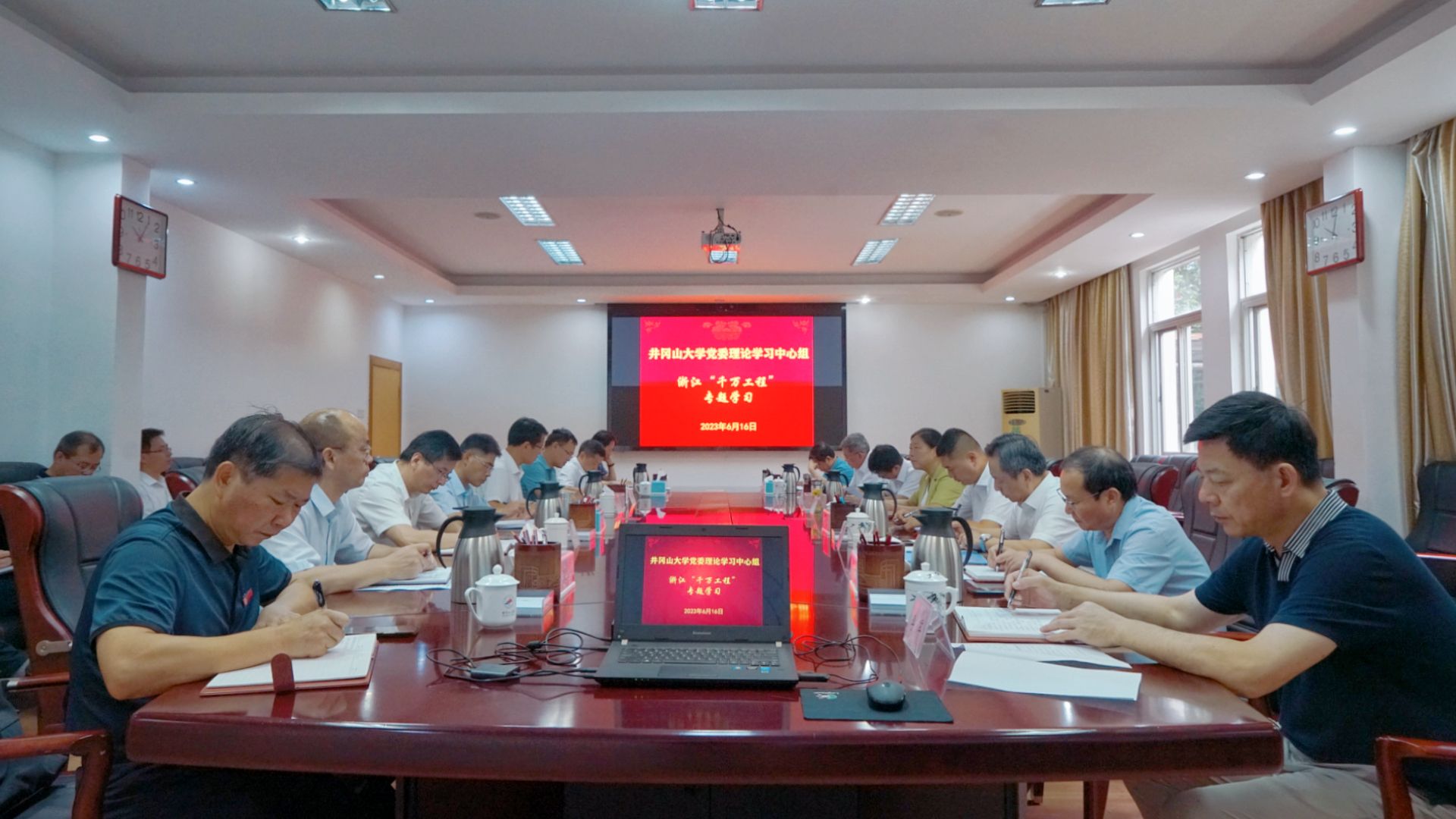 6月16日,校党委理论学习中心组举行学习贯彻习近平新时代中国特色社会主义思想主题教育集体学习会,深入学习浙江“千村示范、万村整治”工程20年经验,传达学习中央主题教育办学习贯彻习近平总书记重要讲话精神相关文件和省委办公厅有关警示通报文件精神。省委主题教育第九巡回指导组成员张道勇到会指导。校党委书记胡春晓主持学习会并讲话。在家的党政班子成员罗旭彪、史胜平、陈小林、黄俭根、肖宜安、李军、刘利民、冷明、欧阳杰、肖洪海和党委中心组其他成员参加学习会。