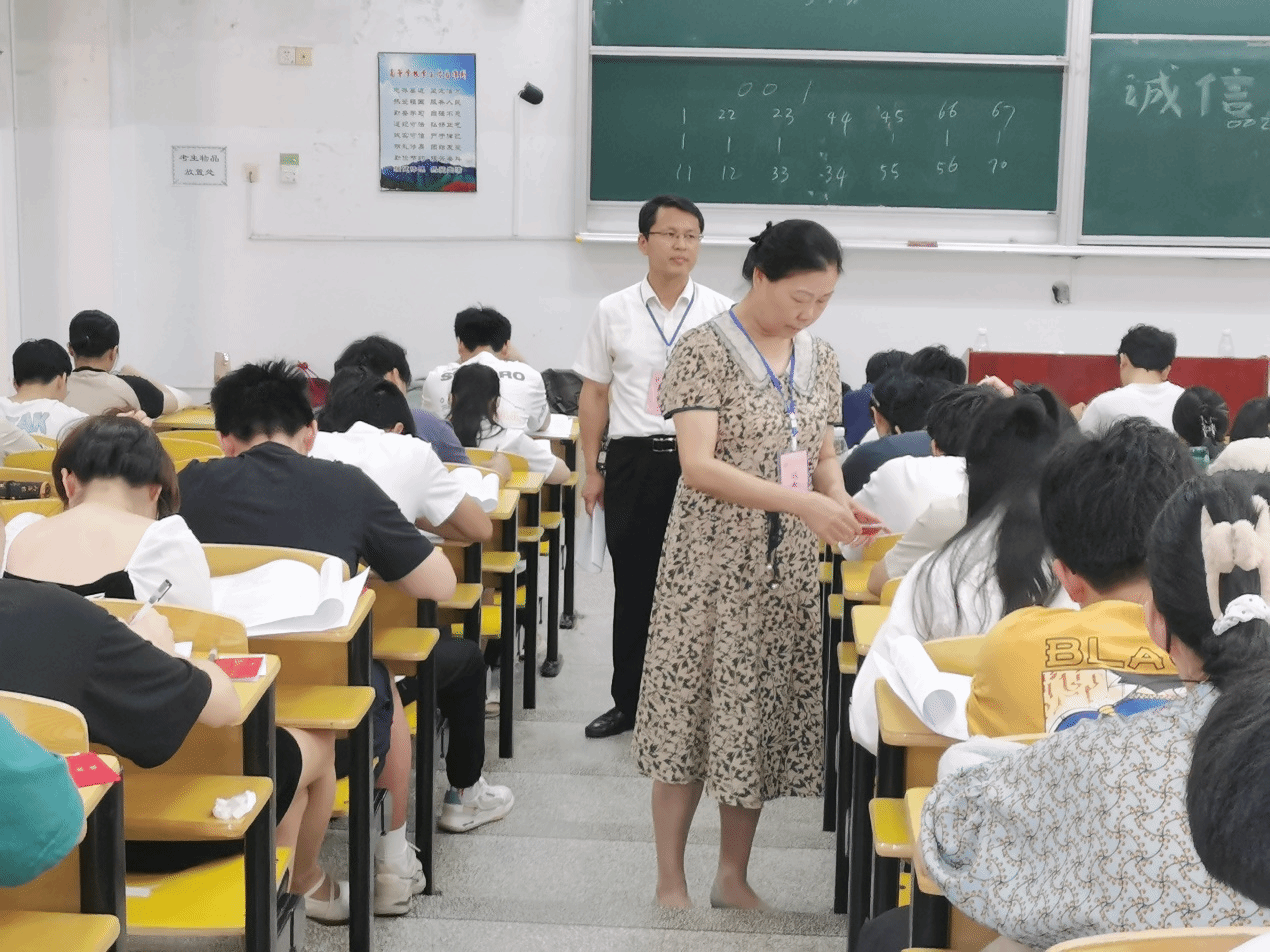 2022-2023学年第二学期期末考试于6月19日开考,党委书记胡春晓,党委副书记、校长罗旭彪,党委常委、副校长冷明在教务处和各学院(部)负责人陪同下分别深入考试现场巡考。