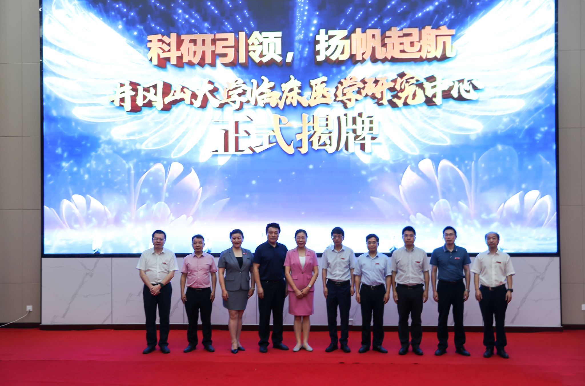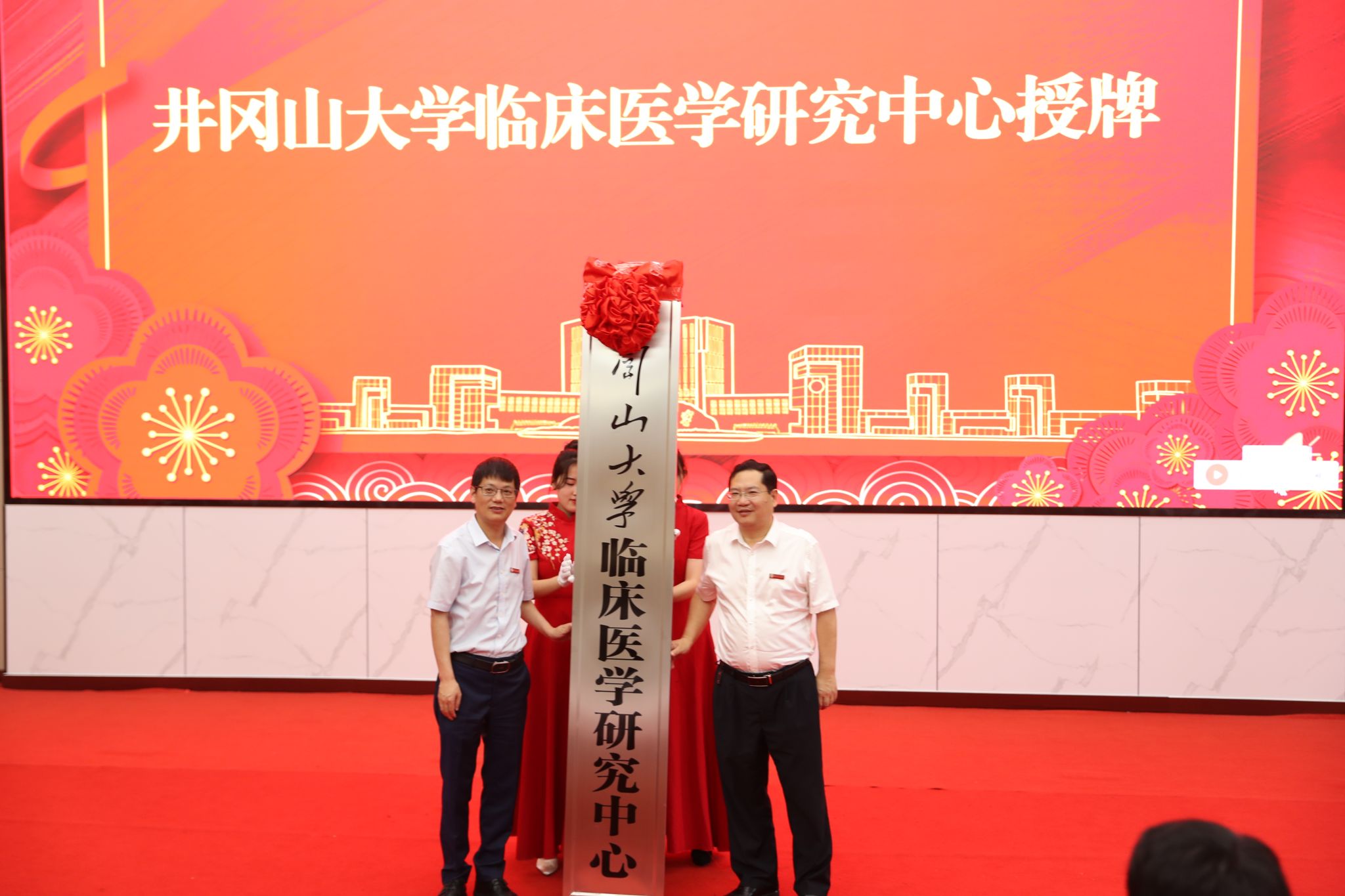 6月13日下午,学校举行井冈山大学医学研究中心揭牌仪式。党委书记胡春晓,党委副书记、校长罗旭彪,党委常委、副校长肖宜安,党委常委、副校长廖岚,校长助理张赫,吉安市卫健委副主任刘忠开以及学校有关职能部门负责人手印屏幕正式启动仪式,罗旭彪和井冈山大学附属医院院长谭立宇为井冈山大学医学研究中心揭牌,谭立宇为廖岚、张赫、陆辉强、邓先清、曹子岗5名PI课题负责人颁发聘书。 廖岚和医学部党委书记康永平分别主持仪式,刘忠开和井冈山大学附属医院党委书记肖游章分别致辞。临床医学研究中心管委会成员、井冈山大学附属医院主要领导及分管领导以及PI课题组及揭榜挂帅课题组所有成员以及院(部)相关成员参加仪式。