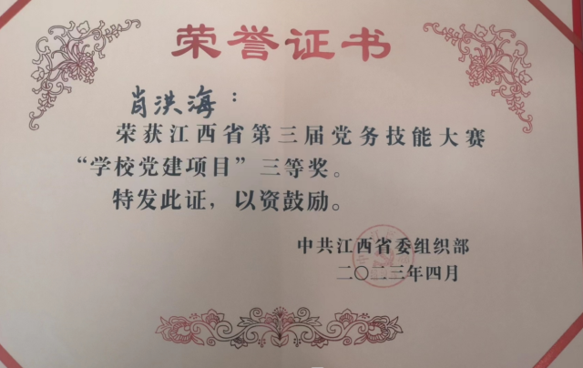 近日,由江西省委组织部主办的全省第三届党务技能大赛分别在萍乡和南昌举办。经过激烈的比拼,我校党委常委、宣传部部长,机关第一党总支书记,党委宣传部党委统战部党支部书记肖洪海以《“党建+四大工程”助推“映山红”思政育人品牌提质增效——井冈山大学党委宣传部党委统战部党支部党建引领业务工作案例》,附属医院内科第一党支部书记、急诊科主任、急诊医学教研室主任刘初强以《坚守“红医”初心,助力乡村振兴——井冈山大学附属医院内科第一党支部结对共建助力低坪村振兴工作案例》参赛,分别获得学校党建项目和公立医院党建项目三等奖。