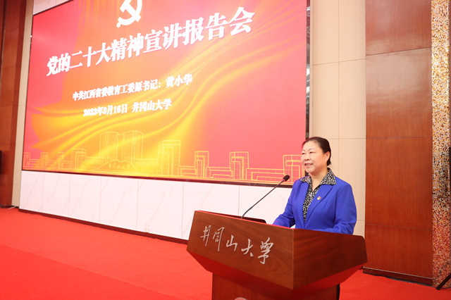 3月16日,应学校邀请,江西省人大教科文卫委员会原副主任委员、省委教育工委原书记黄小华来校作党的二十大精神宣讲报告。党委书记胡春晓主持报告会,全体在家校领导,校党委理论学习中心组全体成员,全校处级干部和马克思主义学院部分教师聆听了报告。