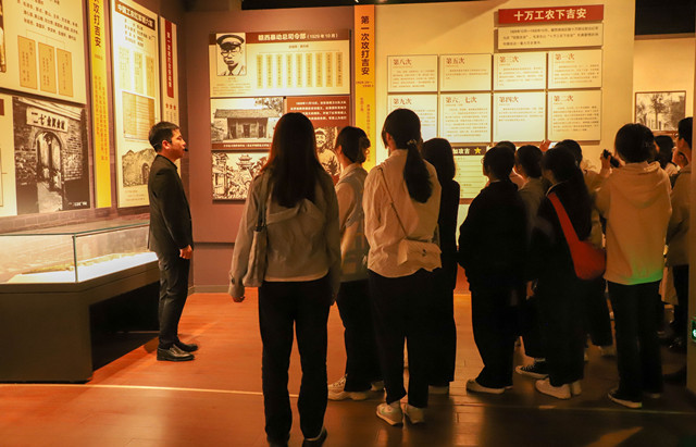 4月5日上午,校团委组织校大骨班学员和青年志愿者们在吉安革命历史陈列馆开展“铭记革命历史 厚植爱国情怀”为主题的参观学习活动,学员们仔细倾听讲解员对十万工农下吉安的历史壮举的介绍,在一张张图片,一件件实物前驻足观看,并不时交流。九打吉安城的故往回荡在耳边,婆娑的指尖划过纪念馆内陈列的橱窗,学员们铭记历史,感怀先辈。这段历史让学员们更加深入的了解了吉安的红色历史,真切感悟到红军及广大工农群众众志成城、百折不挠、勇往直前、舍生忘死的革命大无畏精神,进一步坚定理想信念。