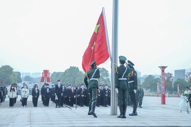 为了悼念在南京大屠杀中死难者和所有在日本帝国主义侵华战争中惨遭杀戮的死难同胞,教育广大青年牢记历史,勿忘国耻,12月13日上午,由校团委组织的“勿忘国耻·圆梦中华”国家公祭日特别升旗仪式在映山红广场举行。校团委学生会团学骨干、第十四期大骨班和第十七期红色励志班学员、外国语学院、人文学院学生代表共500余人参加活动。