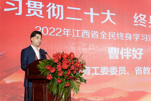 为深入学习宣传贯彻党的二十大精神,认真贯彻落实习近平总书记关于教育的重要论述和视察江西重要讲话精神,积极落实省第十五次党代会“办好社区教育”的任务要求,助力建设高质量教育体系,推进教育数字化,建设全民终身学习的学习型社会、学习型大国,服务高质量发展和共同富裕,11月21日下午,2022年江西省全民终身学习活动周总开幕式在我市举行。省委教育工委委员、省教育厅总督学曹伴好出席总开幕式并讲话,吉安市人民政府副市长周密致辞。江西开放大学党委副书记、校长黄平槐宣读2022年“百姓学习之星”“终身学习品牌项目”表彰决定。井冈山大学党委常委、副校长肖宜安出席总开幕式。