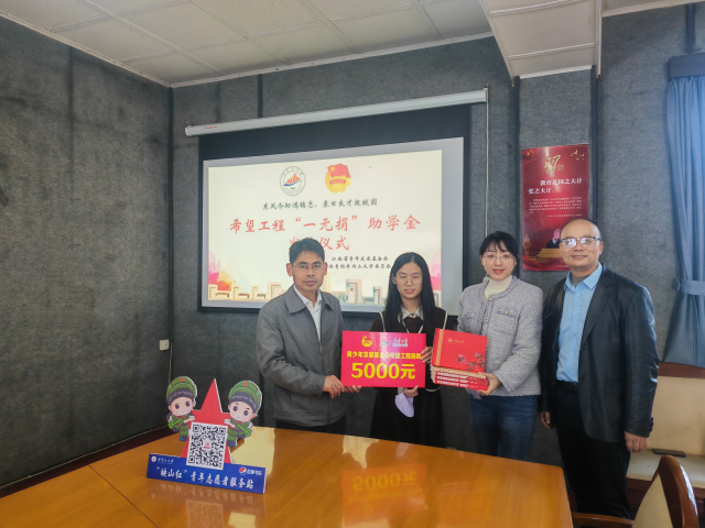11月26日上午,江西省青少年发展基金会希望工程捐助仪式在学校举行。校党委常委、副校长刘利民为教育学院一名受捐赠的学生颁发了5000元捐助款,并赠送学校的红色书籍及纪念品。