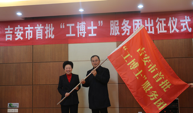 吉安市委副书记肖玉兰为“工博士”服务团授旗