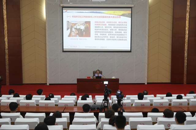 课上,胡春晓从深刻领会习近平总书记关于用好红色文化资源培养时代新人重要论述的重大意义、全面理解红色文化资源的特质、井冈山大学推进红色文化资源融入地方高校转型发展的实践探索等方面,详细阐明了传承红色基因、培养时代新人的深远意义、深刻内涵以及井冈山大学的丰富实践。她强调,我们要深入贯彻落实习近平总书记提出的“要把红色资源利用好、把红色传统发扬好、把红色基因传承好”的重要讲话精神,充分利用红色文化资源提升育人实效,深入落实立德树人根本任务,传承红色基因,赓续红色血脉,努力培养又红又专的具有井冈特质的时代新人。