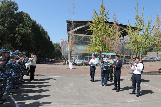 罗旭彪和参训新生亲切交谈,希望新生们学会吃苦,学会创新,增强纪律观念,端正思想态度,积极参加训练,锤炼坚强意志品质,增强健康体魄,开启大学生活的美好篇章。(文/图:胡正佩 审核:黄赣生、郭伟清、胡正佩)