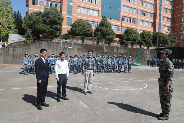 10月22日上午,党委副书记、校长罗旭彪,党委常委、副校长刘利民,在学校武装部负责人的陪同下,来到2022级新生军训现场指导工作,向参训的2022级全体新生表示慰问,向奋战在军训一线的辅导员、大学生预备役教官及全体工作人员表示感谢。