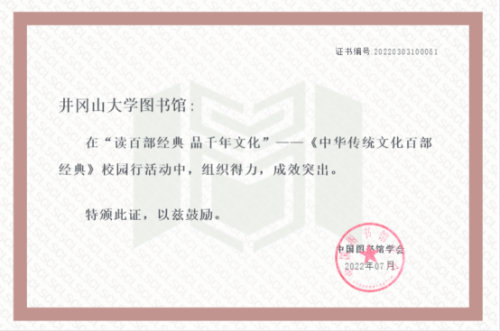 近日,由国家图书馆、中国图书馆学会开展的“读百部经典 品千年文化——《中华传统文化百部经典》校园行”系列活动结束。我校30名师生获个人奖项;学校图书馆获“组织得力”奖。其中,在15.35万人参与的《百部经典》阅读打卡活动中,医学部19临床(3)班罗雨祥同学获第一名,马克思主义学院20级思想政治教育许艳君同学获第五名。