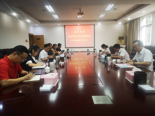 6月15日上午,赣南师范大学党委委员、副校长刘民,率党委学生工作部(处)负责人等一行来校交流,学校党委常委、副校长刘利民出席座谈会。学校学生工作部(处)、井冈山研究中心主要负责人,党委宣传部、团委、映山红育人工作室相关人员参加了会议。