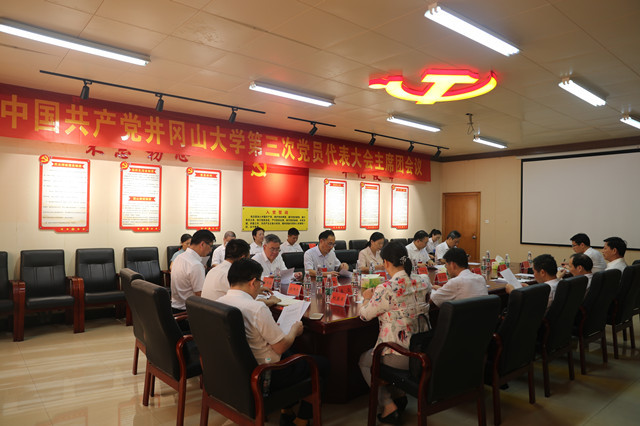 6月23日下午,井冈山大学第三次党员代表大会举行预备会议,胡春晓、曾建平、刘祖文、史胜平、陈小林、黄俭根、肖宜安、李军、刘利民、冷明、廖岚、欧阳杰、肖洪海、刘梁军等在主席台就坐,会议由大会秘书长刘祖文同志主持。