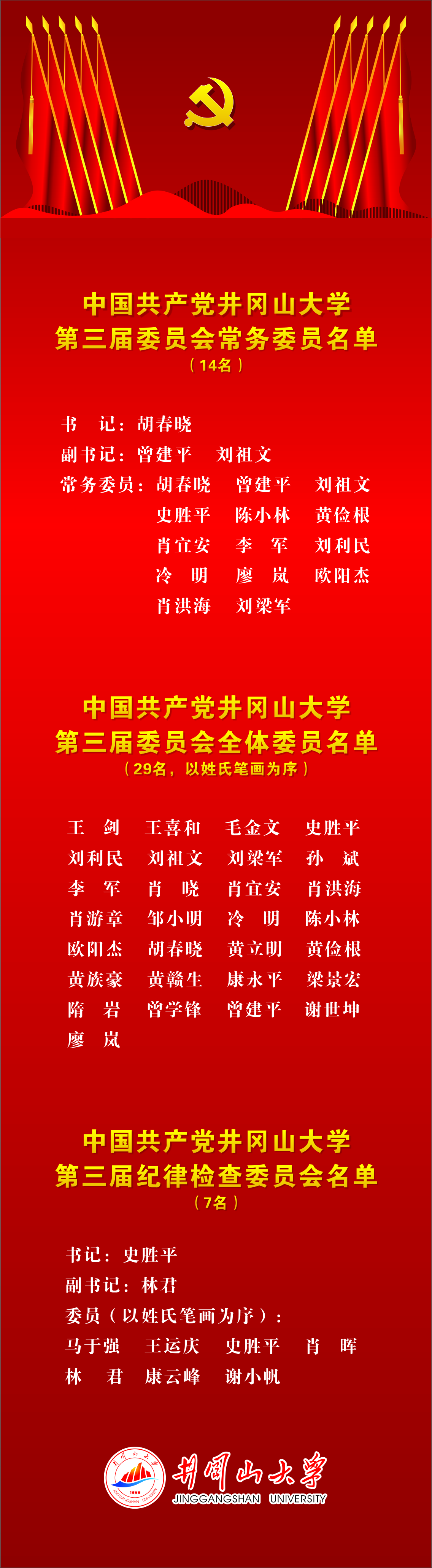 中共井冈山大学第三届委员会常委、委员、纪委委员名单
