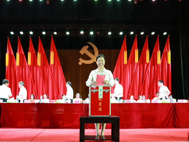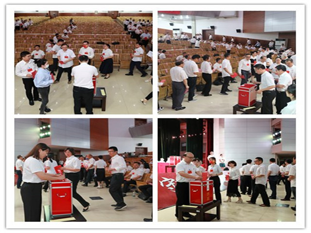 大会场现场氛围庄重、热烈。工作人员宣读了中国共产党井冈山大学第三届委员会委员和中国共产党井冈山大学第三届纪律检查委员会委员候选人名单。总监票人、监票人、主席团成员、各代表团代表依次投票。