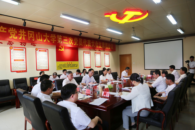 6月24日下午,中国共产党井冈山大学第三次党员代表大会第二次全体会议召开。胡春晓、曾建平、刘祖文、史胜平、陈小林、黄俭根、肖宜安、李军、刘利民、冷明、廖岚、欧阳杰、肖洪海、刘梁军等在主席台就坐,会议由大会秘书长刘祖文同志主持。