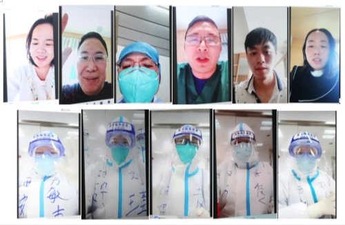 11名队员汇报了自身的工作、身体和精神状况,纷纷表示,自己的身体精神状态都很好,防疫物资也很充足,非常感谢学校、医院领导的关心和牵挂,请大家放心,一定坚定初心,不辱使命,弘扬精神,严格按照防疫要求,出色圆满地完成党和人民交予的光荣任务,平安归来。