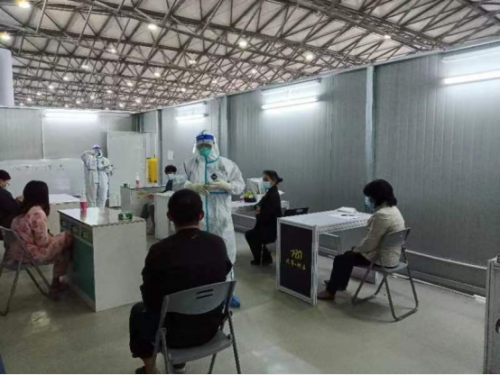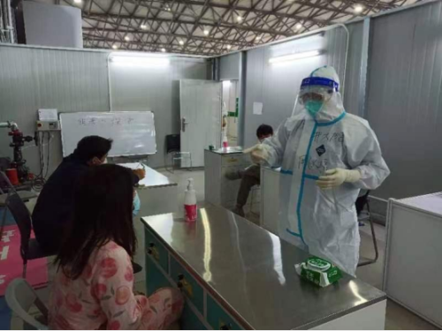 5月1日上午,上海新国际博览中心方舱医院N4舱,江西吉安首批援沪医疗队队员,井冈山大学附属医院副主任医师周秋根在方舱小课堂开课了,给舱内中老年患者普及高血压防治知识。