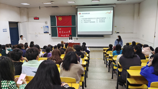 政法学院团委在主题团日活动中开展了党团知识竞赛。通过比赛,使同学们了解到了更多的党团知识,弘扬伟大建党精神,坚定历史自信,宣传在新时代、新形势下召开党的二十大的重要意义,对团员青年增强自身政治素质,在今后学习和工作中砥砺前行起到了积极的推动作用。