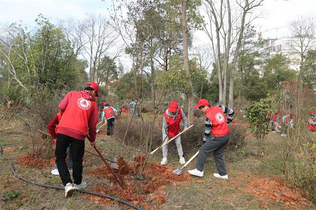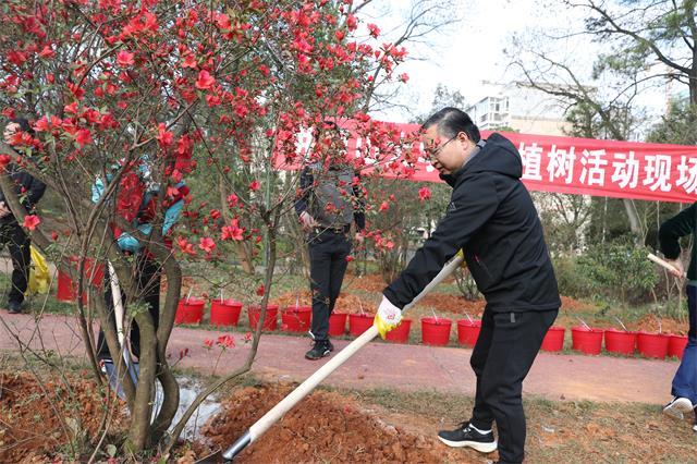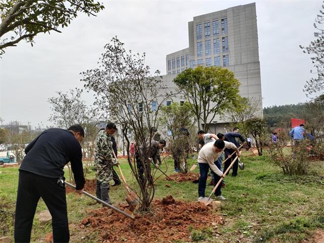 3月10日上午,学校党委班子成员胡春晓、曾建平、刘祖文、吕玉华、史胜平、陈小林、黄俭根、李军、刘利民、冷明、李裕福、欧阳杰、肖洪海等领导和广大机关干部、大学生志愿者一起,来到映山红园开展植树造林活动。