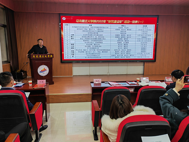 3月22日下午,马克思主义学院举行“学在马院,行求卓越”学风建设年活动,安排部署学风建设年具体工作。校党委副书记刘祖文出席并讲话。有关部门负责人、马克思主义学院领导、各班班主任以及部分学生代表参与了活动。