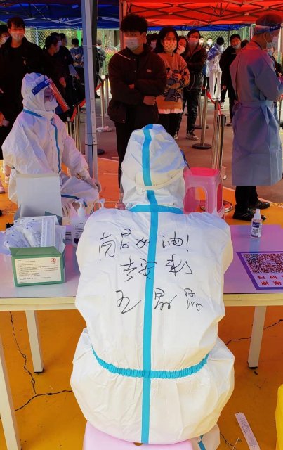 终于有任务啦!3月20日,南昌市第三轮采集核酸检测开始,早上5点50集合,祸不单行,危机面前总是有种种困难的挑战!今天的平均气温很低,最高温度只有10摄氏度。还好当地政府给我们分发了一件保暖的外套,当天在采集点工作到晚上六点,真是冻得手脚发痳,脱防护服的力气都使不上来,真担心自己会感冒,幸好同伴帮忙,建议喝热开水,早点休息,有事打电话。我们相互温暖,互相鼓励,病毒无情,人间有情。