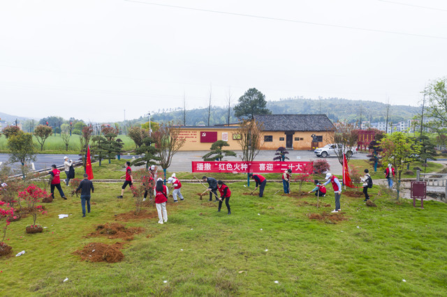曾建平带领学校 “映山红”团队全体师生一行近20人在贺页朵誓词广场种植映山红、播撒红色火种,师生们挥锹培土,将井冈山大学青年学子们赠予的一株株映山红种植在这片遍布红色印记、传承红色基因的土地上。在贺页朵誓词广场,党员师生们面向党旗重温入党誓词。随后一同参观了中共永新县东南特别区委地下交通站旧址和誓词陈列馆,该馆珍藏了最早誓词物证——贺页朵1931年入党时宣誓的誓词。