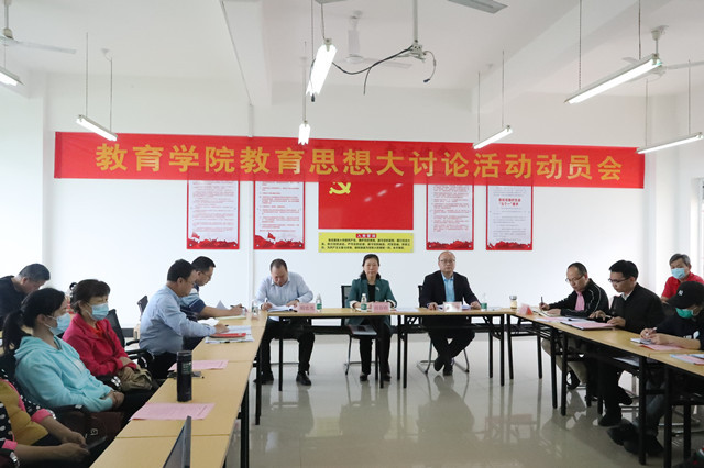胡春晓强调,教育学院是学校以师范教育为主要底色的二级教学学院,承担着为基础教育、学前教育培养优秀师范生的使命,要有在此次教育思想大讨论活动中在全校作表率、走前列的勇气担当。她指出,当前高等教育已进入普及化阶段,学院要深刻认识大讨论活动重要意义,进一步统一思想,深刻把握高等教育发展的新形势、新要求。要找准坐标,审视学院发展存在的短板和弱项,进一步理清发展思路,明确发展目标,坚定发展信心;要抢抓机遇,不断强化学院内涵建设,统筹抓好学院人才培养、教育学专业硕士点培育申报,课程思政建设、服务地方发展、毕业生就业创业、党建和思想政治工作、人才“引培留用”等管理服务、疫情防控,维护好学院发展安全稳定大局,推动学院高质量有特色发展。