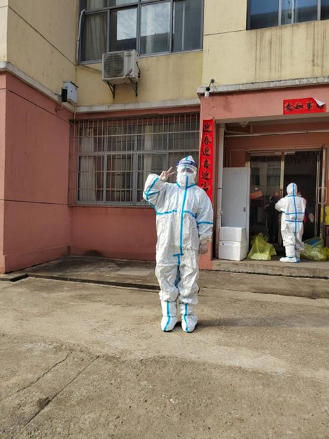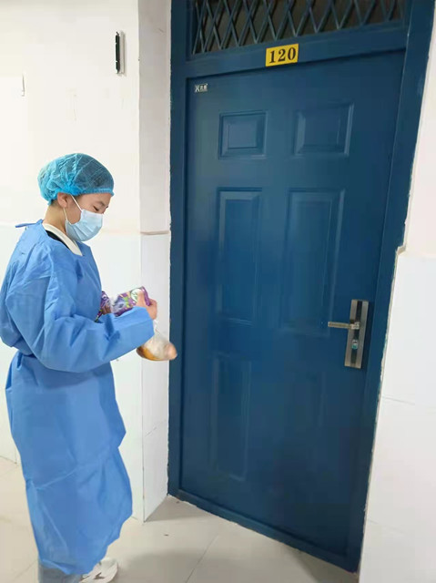 为给处于医学观察的师生们送去关怀和服务,志愿者们穿着厚重的防护服,进行一对一、一对多的温暖送餐服务,确保集中隔离、健康观测的学生在隔离期间能够正常生活与学习,实现了“隔离不隔爱”,暖人更暖心。三十多度的高温天气,红志班的志愿者身着防护服,协助医护人员为38、39两栋隔离的同学上门核酸。身处隔离区域的志愿者们连续战斗五、六个小时没喝过一口水、没进过一粒米、没上过一趟厕所。第十六期红志班三连学员张文海说道:“那天我们两个跟着医护人员整栋楼跑,期间我想去卫生间,但因为穿脱防护服不方便,为了保证工作及时有效地完成,我一直憋着直到工作结束,脱下防护服并完成消毒,才去了卫生间。”第十六期红志班一连连长熊昕怡说:“我高度近视,戴眼镜给我的志愿服务工作增加了很多难度,因为是全副武装,需要戴护目镜,再加上当天的气温高,工作开始十几分钟后我的眼镜上就开始起雾,但是工作不能中途结束,只能硬着头皮上,到最后护目镜上全部都是水汽,当我脱下防护服时,里面的衣服都被汗水浸湿了。”