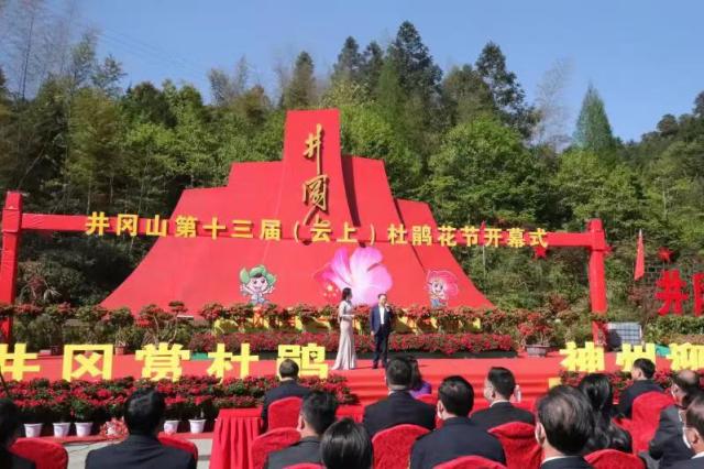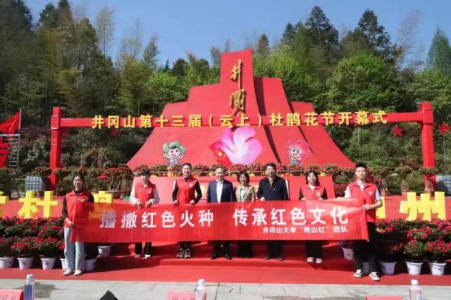 人间四月风景好,井冈杜鹃花又开。4月9日,井冈山第十三届(云上)杜鹃花节线下开幕式在井冈山茨坪景区举行。吉安市副市长、井冈山管理局党工委书记、井冈山市委书记傅正华致辞,我校党委副书记、校长曾建平,井冈山管理局局长、井冈山市市长廖东生等领导和嘉宾出席开幕式。我校创新创业大赛“映山红项目”全体成员参加开幕式。