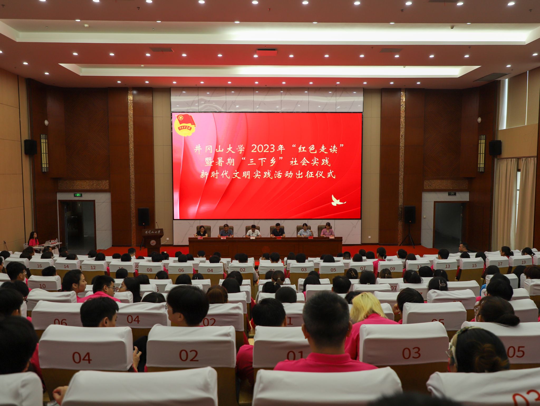 6月25日下午,学校举行2023年“红色走读”暨暑期“三下乡”社会实践、新时代文明实践活动出征仪式,党委常委、副校长刘利民,党委常委、宣传部长肖洪海出席并为出征的社会实践团队授旗,学校有关部门负责人出席并为社会实践团队授旗,各学院党委分管领导、学院团委负责人以及实践团队代表、社会实践志愿者代表共计200余人参加了仪式。